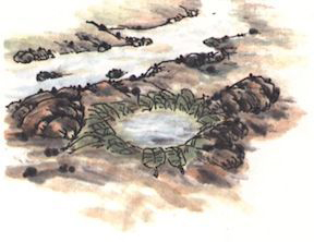 經(jīng)沙土的過濾,滲入坑中的河水清澈潔凈。將石子兒在火堆中燒熱,與食物一起放入水坑,石子兒的熱量被水吸收,很快將食物煮熟。