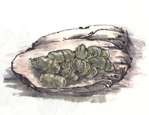 后來,有人將食物用植物葉片包裹扎牢,再放入水坑中煮熟,加工過程更加簡便、衛(wèi)生,這便是粽子的雛形。