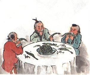 因勞工數(shù)量眾多,送飯成了大問題。人們就把飯食裝在竹筒內(nèi),或者用蘆葉包裹,從上游拋入河中,下游的人撈起來就可以吃了。